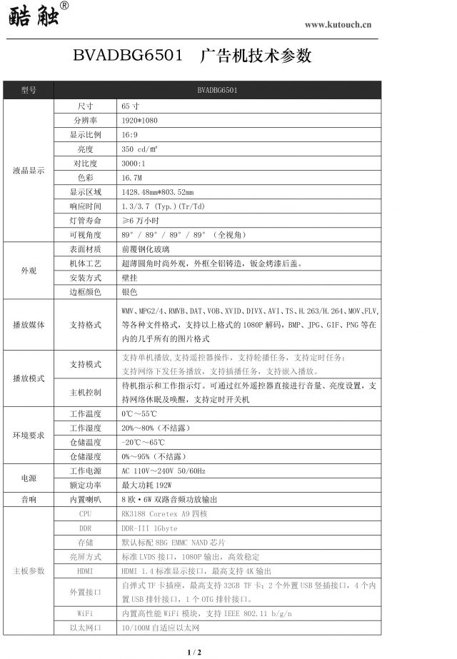 產(chǎn)品型號:BVADBG6501產(chǎn)品品牌:KUTOUCH 酷觸產(chǎn)品產(chǎn)地:安徽合肥